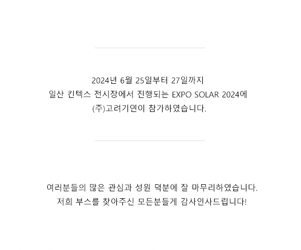 EXPO SOLAR 2024에 ㈜고려기연 부스를 방문해주셔서 감사합니다.