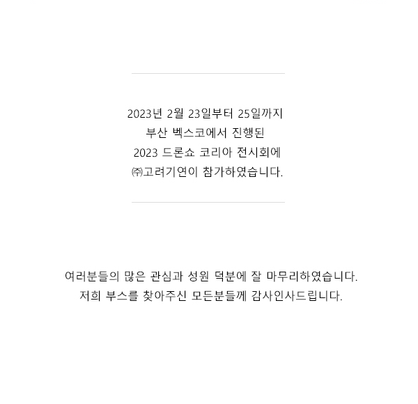 2023 드론쇼 코리아 전시회에 ㈜고려기연 부스를 방문해주셔서 감사합니다.